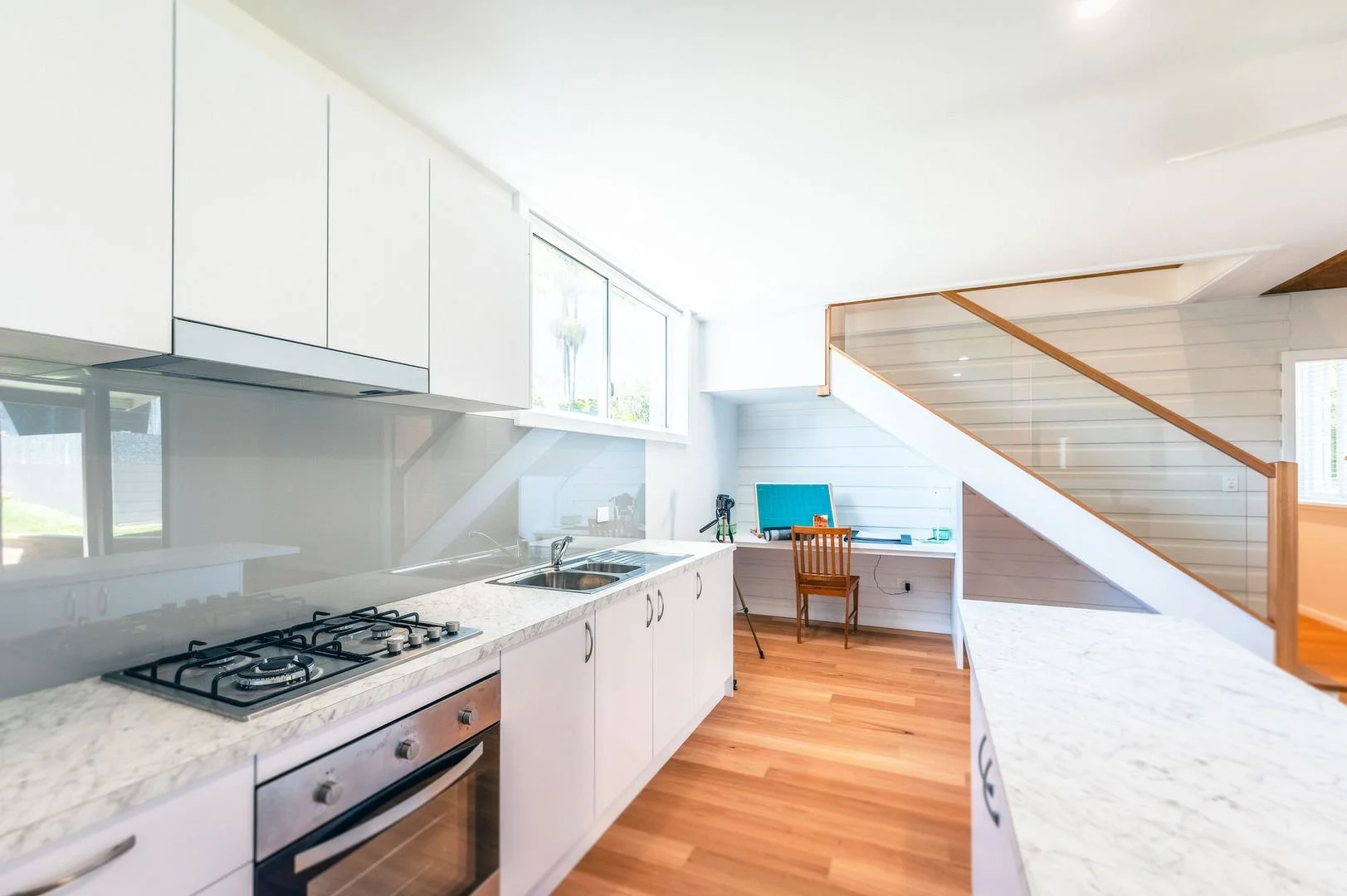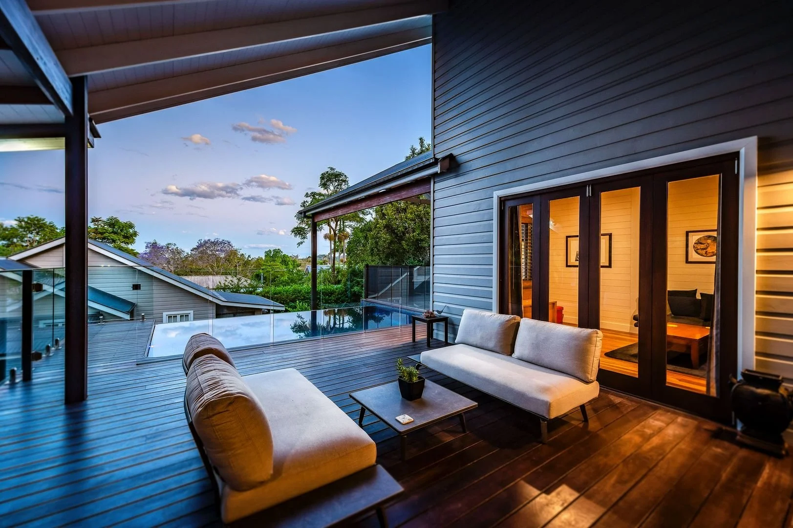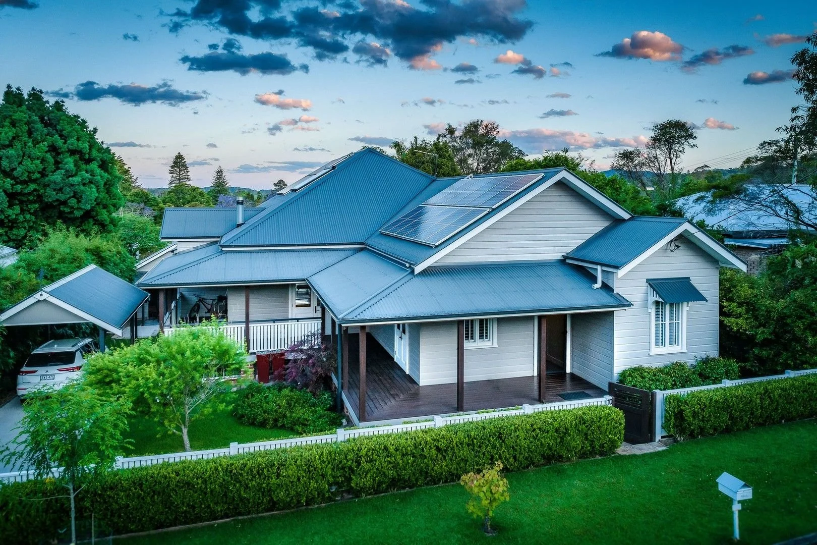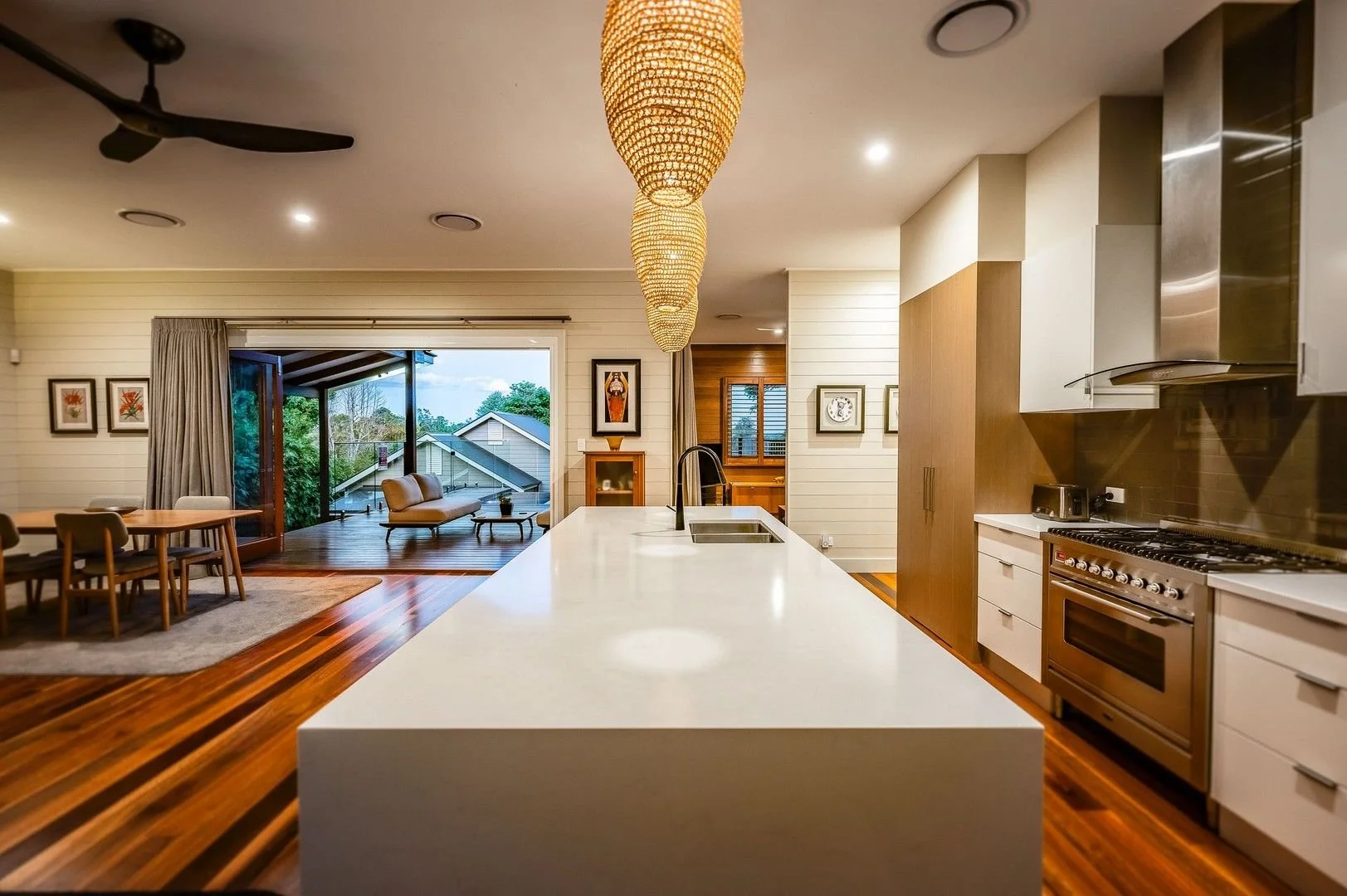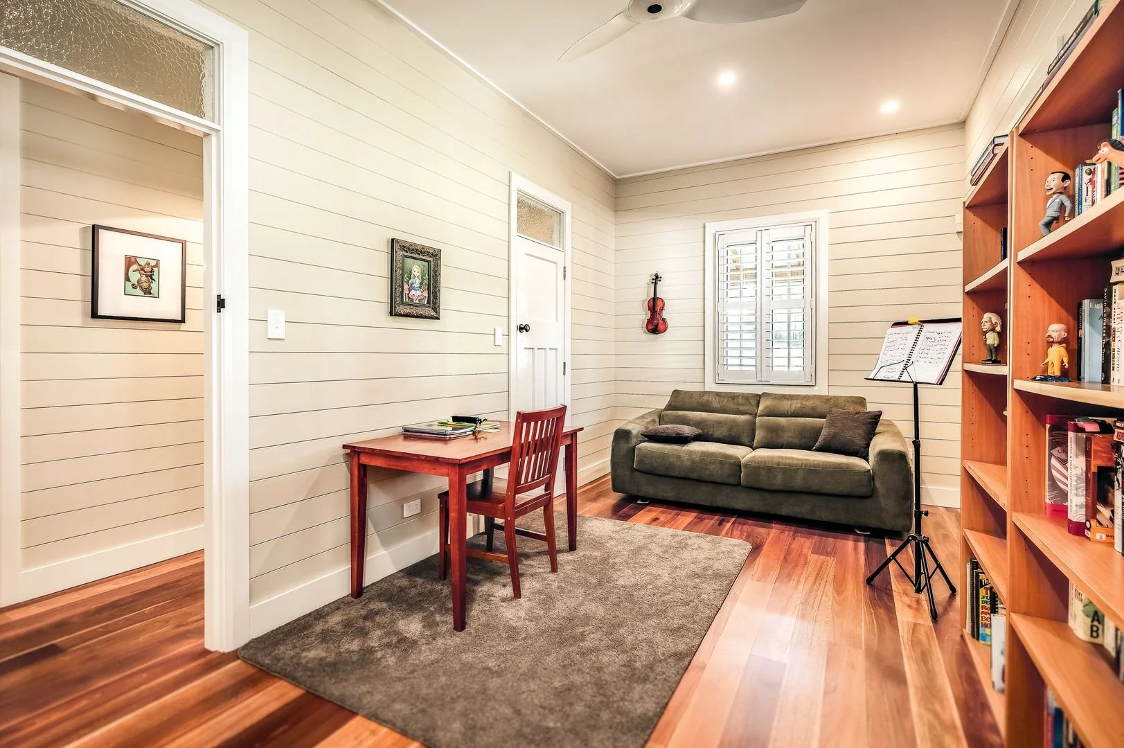 This extensivly renovated home shows traditional roof forms and verandahs, polished timber floorboards, high ceilings and open living spaces.