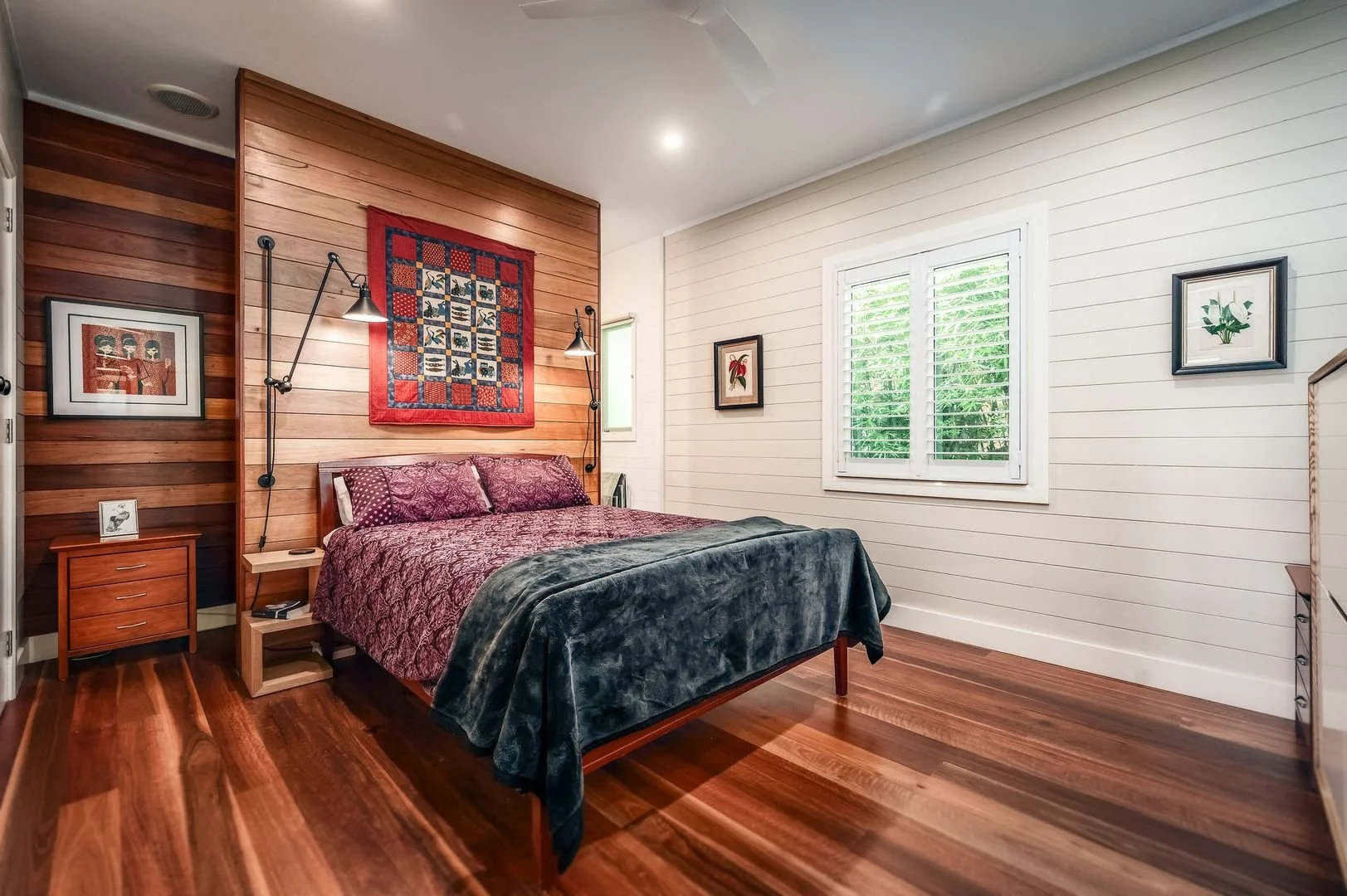 A separate double garage was converted into a studio. The home additions included 2 bedrooms, a pool, a wine cellar, workshop, second laundry, and storage area.