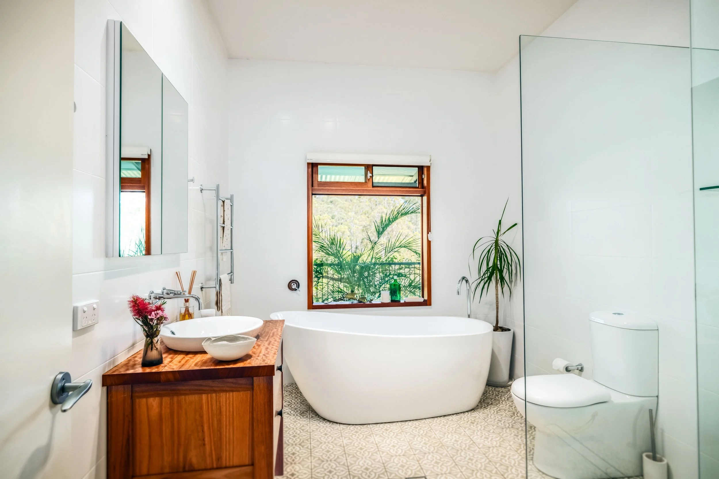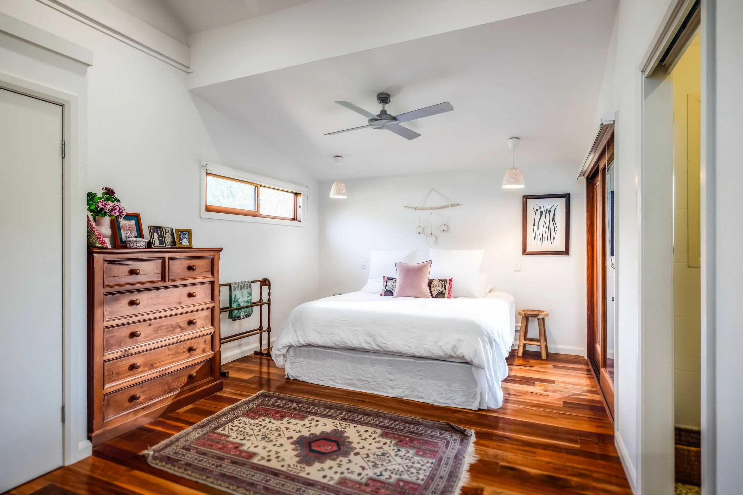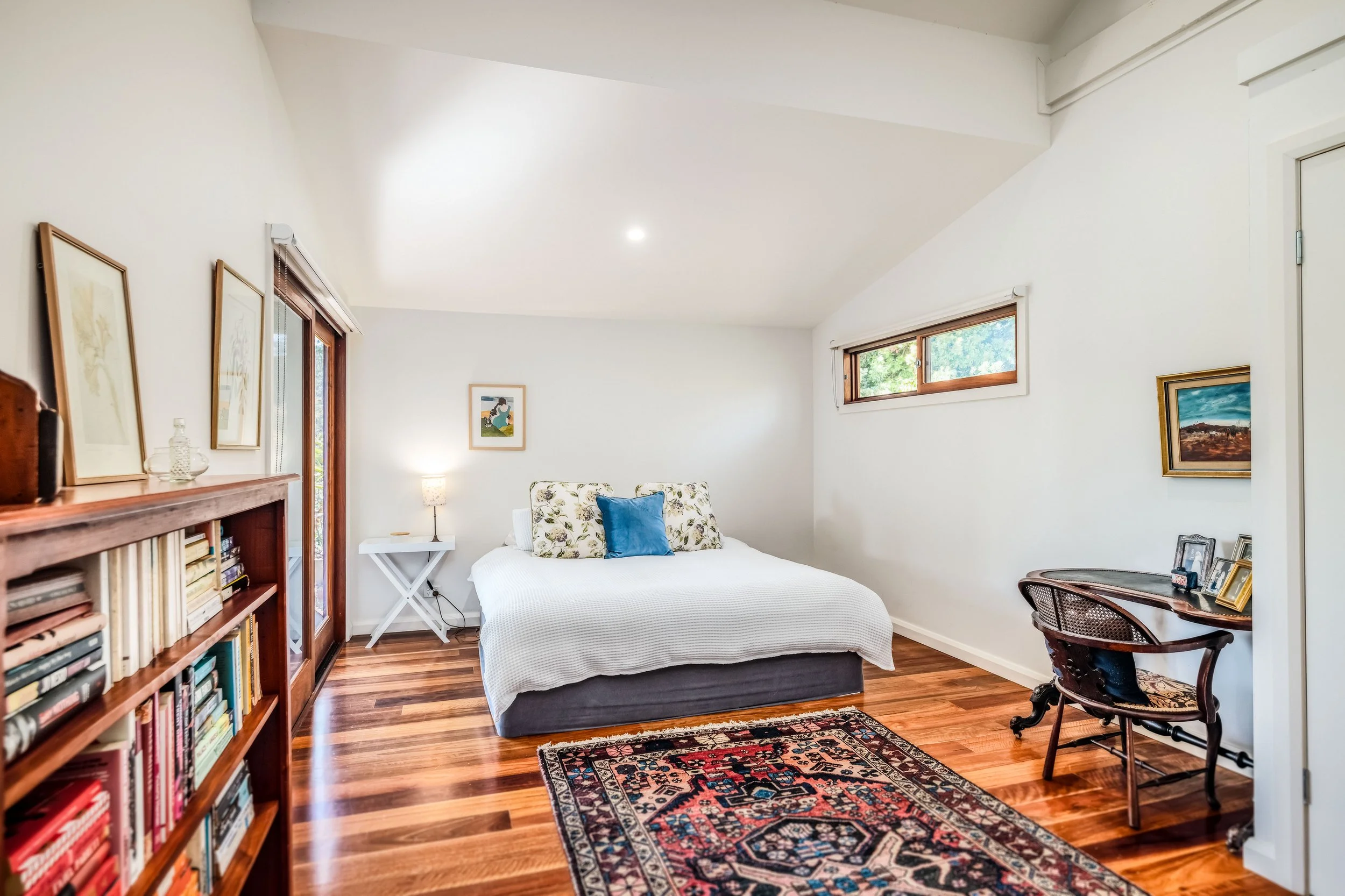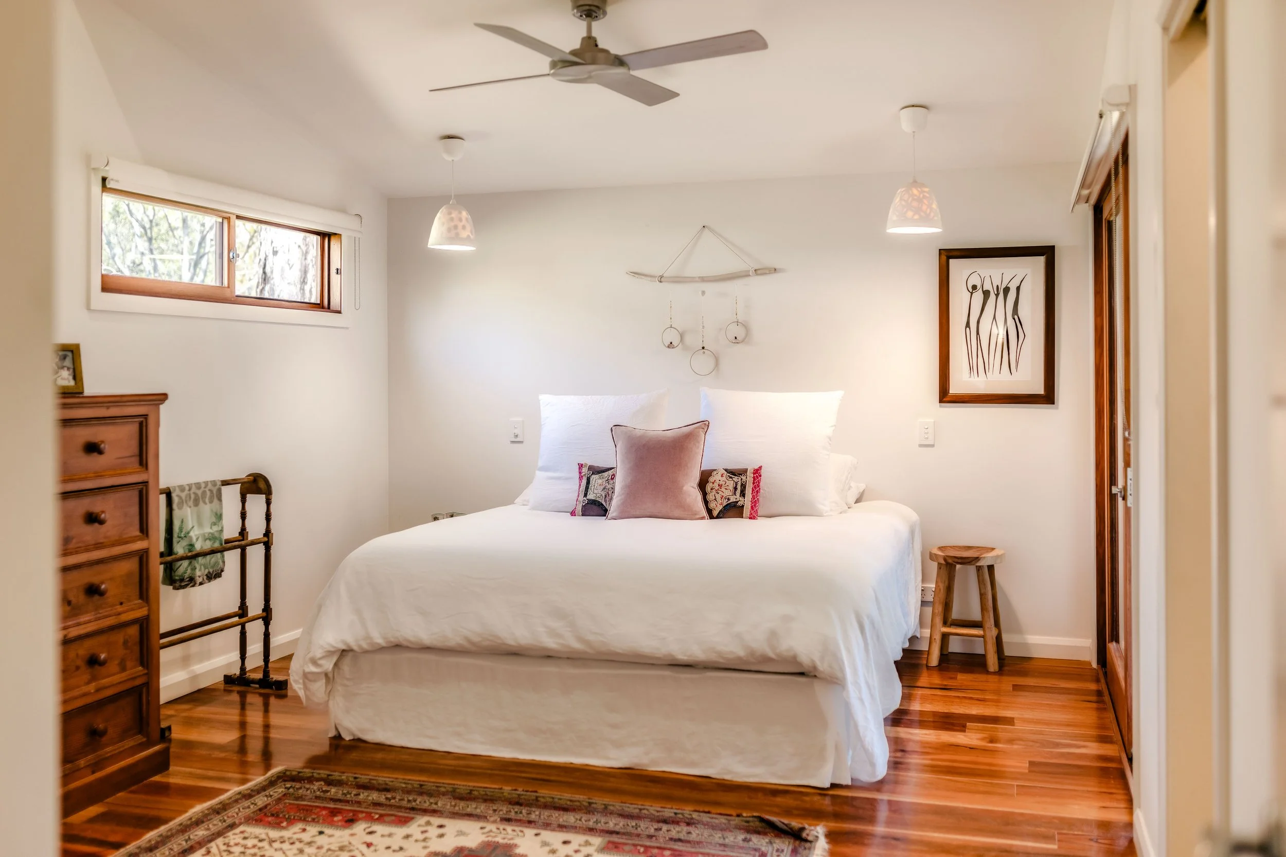 The challenge: An East West facing large dwelling plus shed. It was very dark inside and had no connection to the surrounding lands, but showed beautiful roof trusses. Extensive renovations were made to the internal living space which actually made it smaller after the completion of work. This was due to the removal of one bedroom and one bathroom on the northern end, turning the area into an outdoor deck which was the key to this successful renovation. Turning the shed into a secondary guest dwelling with an old concrete water tank transformed into a plunge pool was also a delight.
