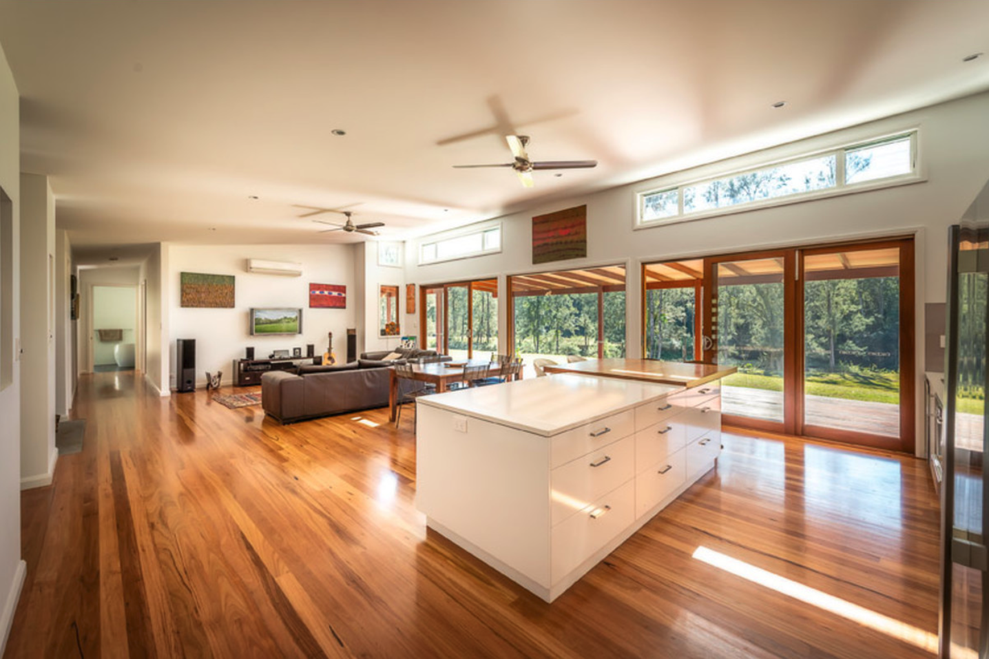A classic solar passive large family home. All bedrooms, lounge and kitchen are facing North and towards the Kalang River. This place has a wonderful connection between the indoor and outdoor living areas and embraces the connection to the natural environment surrounding this home.